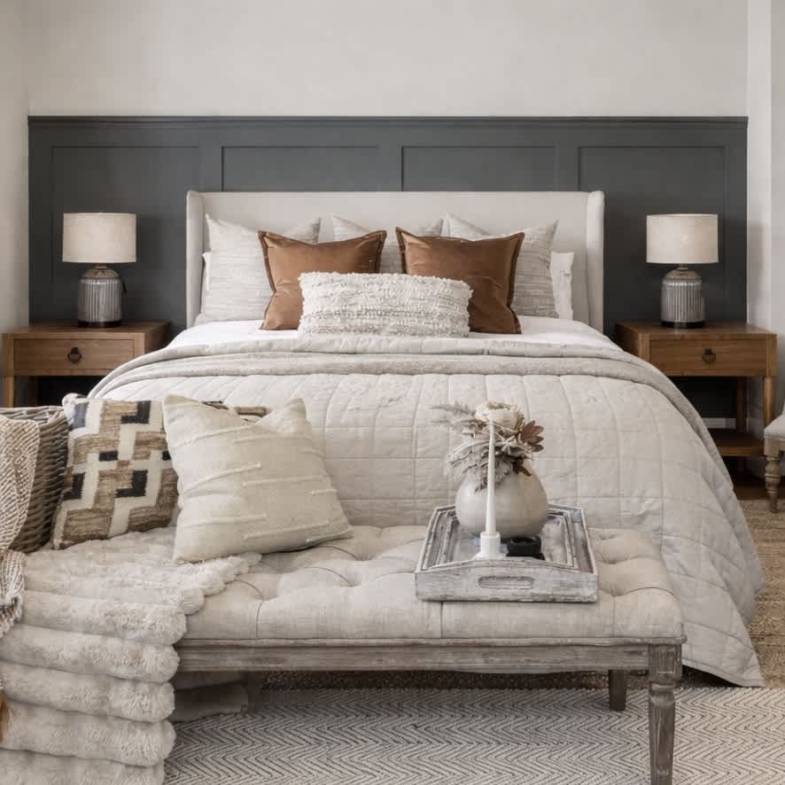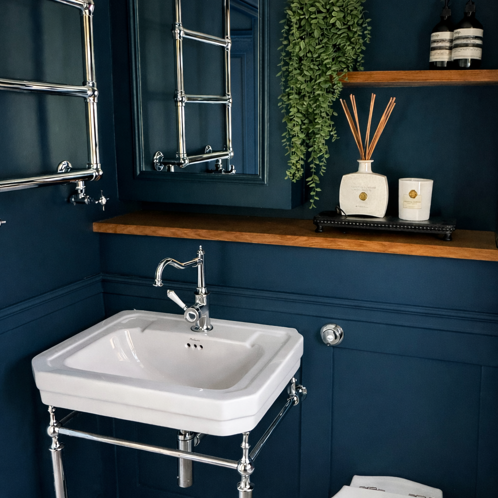 To complement this, I introduced an aged blue-grey tone on the walls, creating a calm yet characterful backdrop. This blend of cool and warm tones created a layered, welcoming atmosphere that felt true to the cottage’s heritage.