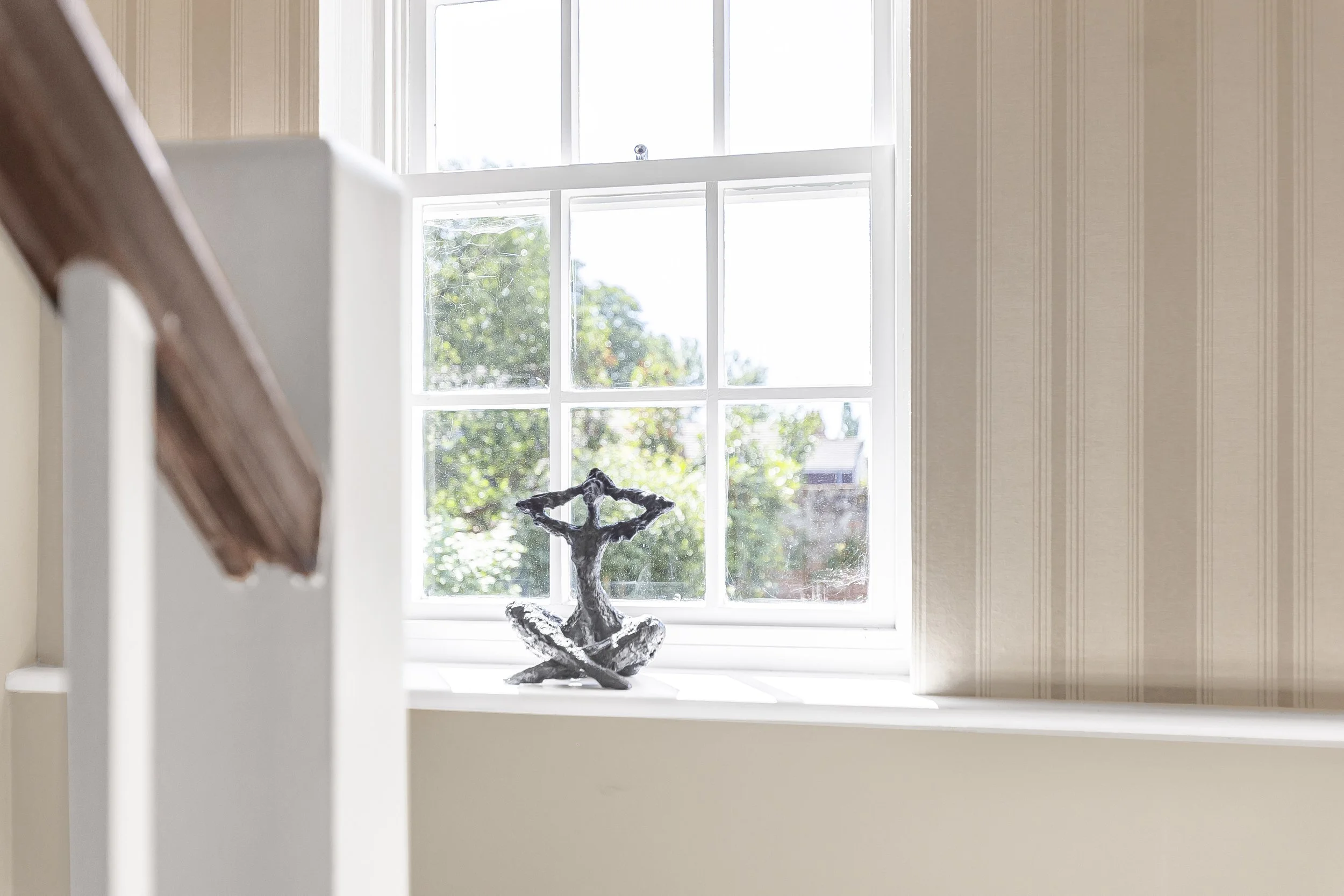 The layout was re-imagined to improve flow and usability. A cosy breakfast nook was introduced in the kitchen to make the most of natural light and provide a sociable spot for morning coffee. Upstairs, a cramped bath was replaced with a generous walk-in shower, and bespoke built-in cabinetry was designed to maximise storage without compromising the cottage’s character.