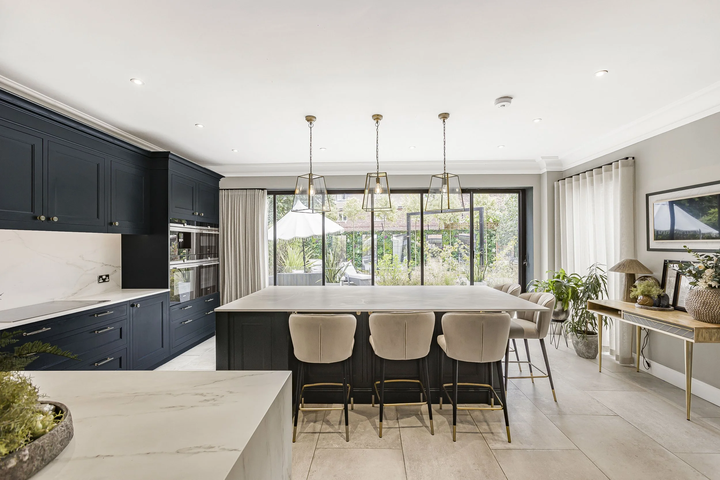 The key design move was to open up the ground floor, knocking through the existing layout to create one large, multifunctional space, while still maintaining distinct zones through a “broken plan” approach. Large glazed doors were added to the kitchen to draw in natural light from the south, instantly brightening the space and creating a stronger connection to the garden.
